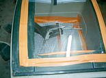 découpe une fenêtre rectangulaire sur laquelle on fixera une plaque
